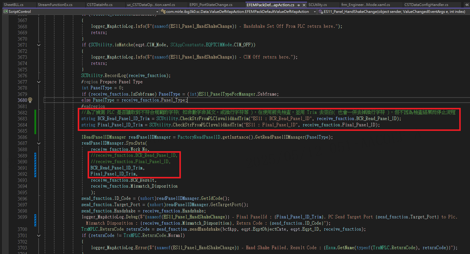 於收到 ES11 時檢查 BCR_Read_Panel_ID 與 Final_Panel_ID 是否帶有非規範的字符或換行字符,並做 Trim 處理後才存入 Local 變數使用
